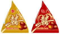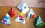 適合于膨化食品、蝦條、花生、爆米花、麥片、瓜子、果凍、白糖、鹽等顆粒狀、短條狀、液體狀食品的三角形包裝