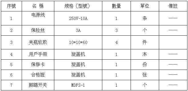2、為避免人身傷害,請使用接地交流電源插座。電源插頭與插座應(yīng)接觸良好,否則容易損壞旋蓋機。