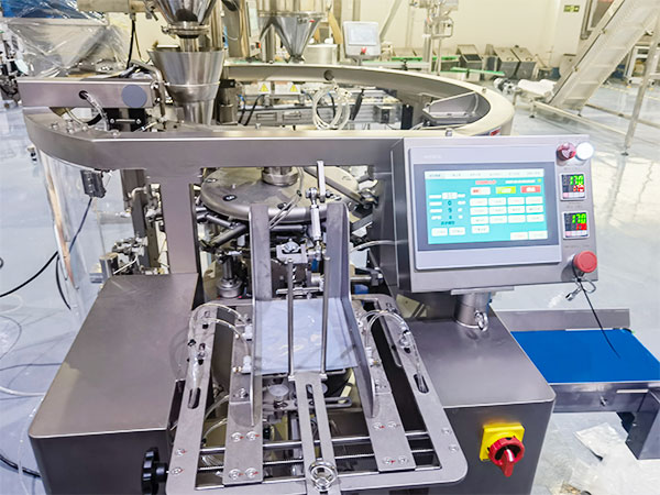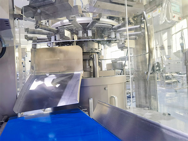3、下料與封口功能,自動(dòng)化粉劑包裝機(jī)將定量好的脫脂奶粉充填至包裝袋當(dāng)中,然后再通過(guò)加熱的方式對(duì)包裝袋的開口處進(jìn)行包裝密封,保證運(yùn)輸過(guò)程中的安全輸送。